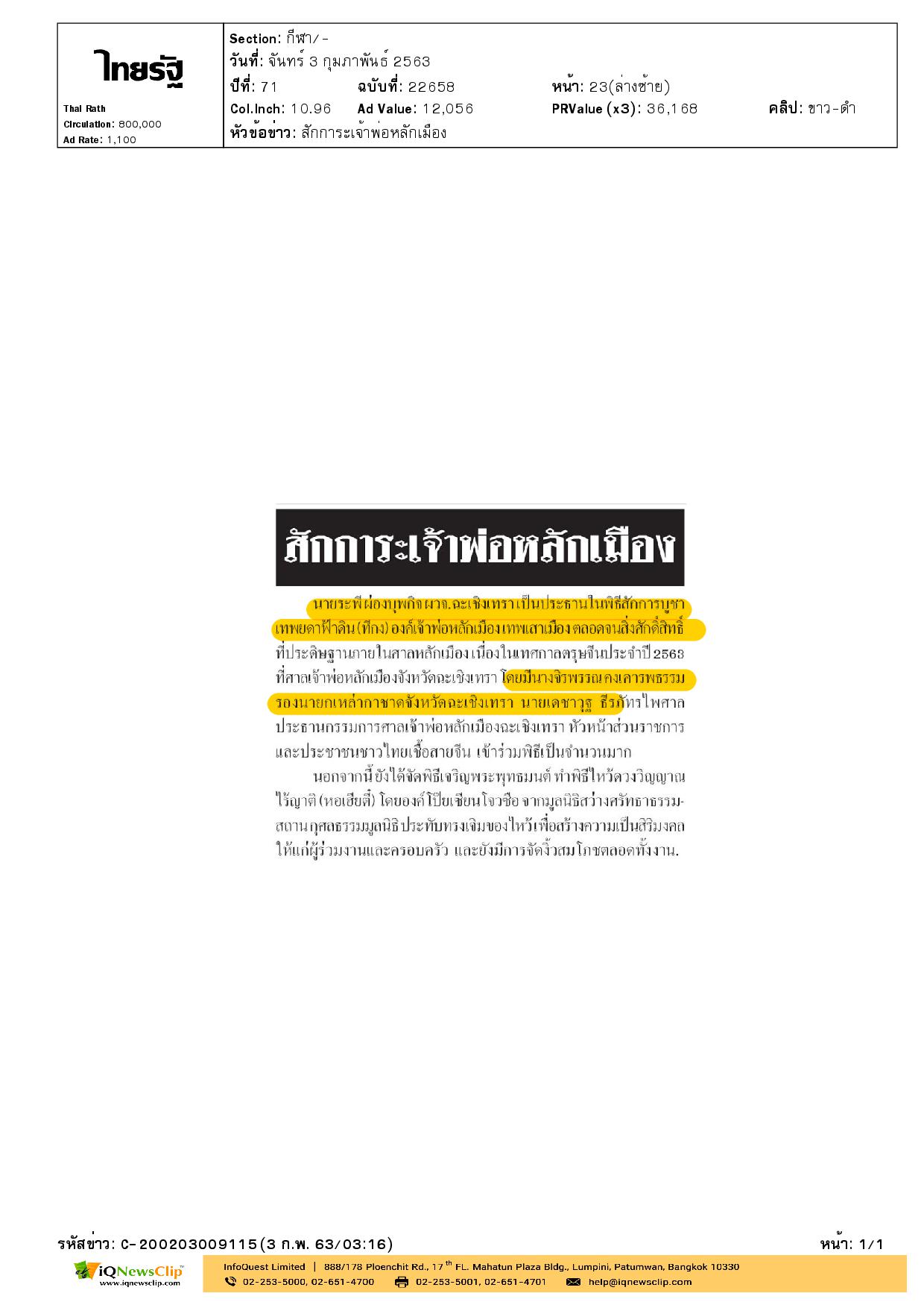 รองนายกเหล่ากาชาด จ.ฉะเชิงเทรา ร่วมพิธีสักการะเจ้าพ่อหลักเมือง เนื่องในเทศกาลตรุษจีนประจำปี 2563