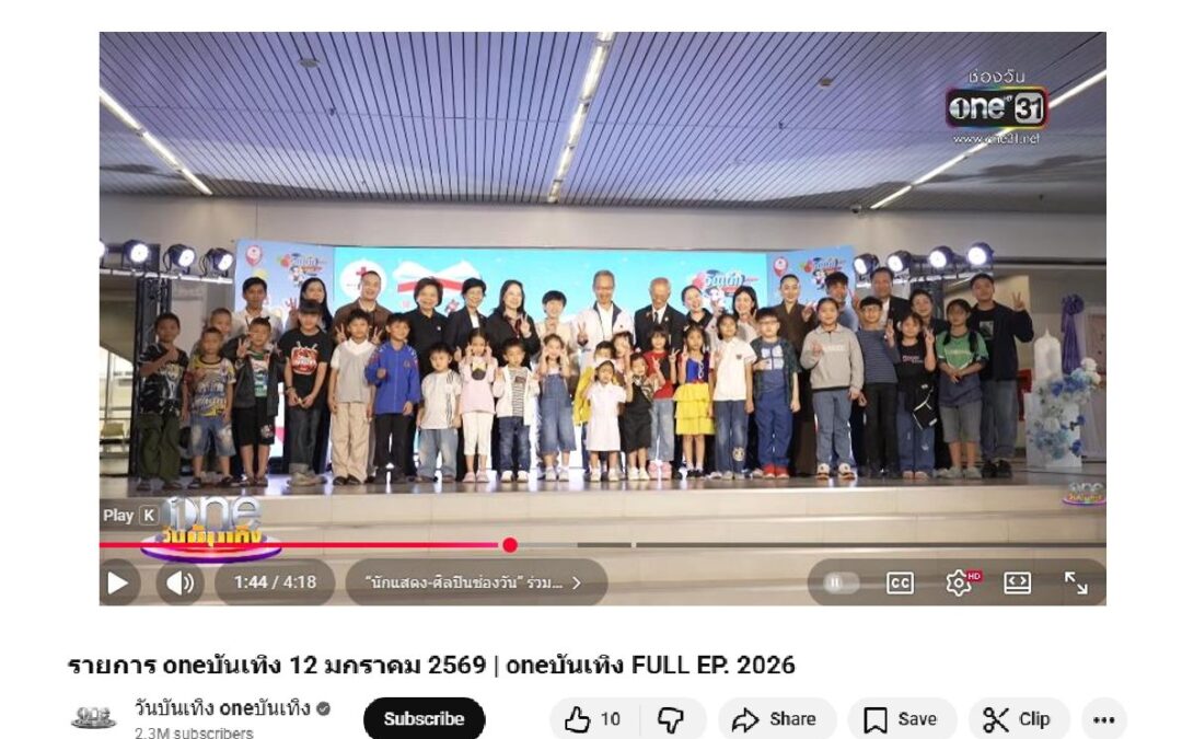 | สภากาชาดไทยจัดงานวันเด็กแห่งชาติ ประจำปี 2569 “เด็กไทยหัวใจภักดี ร่วมทำความดี ถวายพระพันปีหลวง” ในวันเสาร์ที่ 10 มกราคม 2569 ณ บริเวณโถงชั้นล่าง อาคารสิรินธรานุสรณ์ 60 พรรษา สถาบันการพยาบาลฯ โดยมีศิลปิน นักแสดงจากช่อง ONE31 เข้าร่วมงาน |